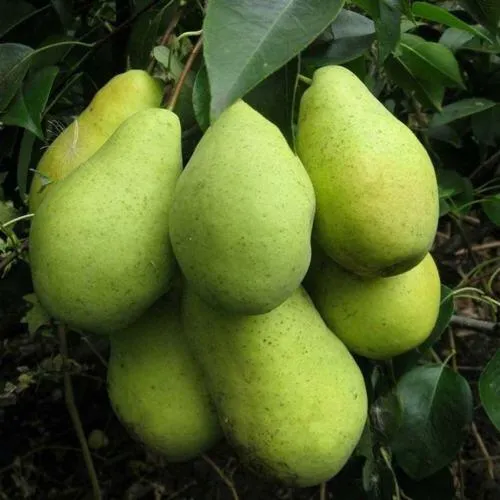 - Правильной удлинённо-грушевидной формы, зеленовато-жёлтого, а при полном созревании – жёлтого, с размытым покровом, цвета, покрыты восковым налётом. Кожица гладкая, средне толстая, маслянистая. Мякоть умеренно плотная, приятная и полумаслянистая, крайне сочная, белого цвета, не содержит грануляций. Семечки среднего размера, узко-конической формы, коричневого цвета;